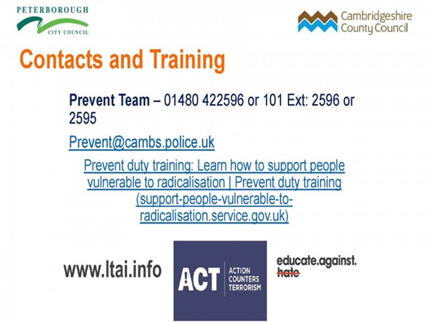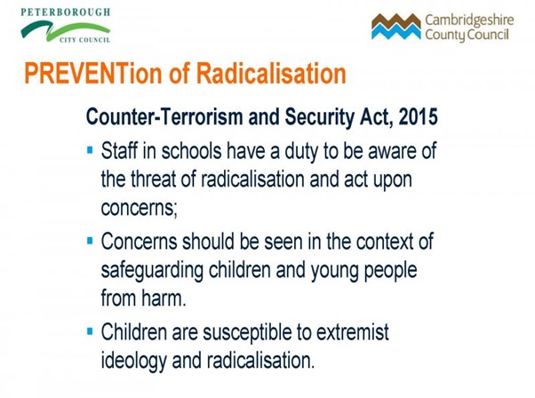 Staff at Cambourne Village College are trained on PREVENTion of Radicalisation to be aware of the threat, spotting the signs and how to report any concerns.